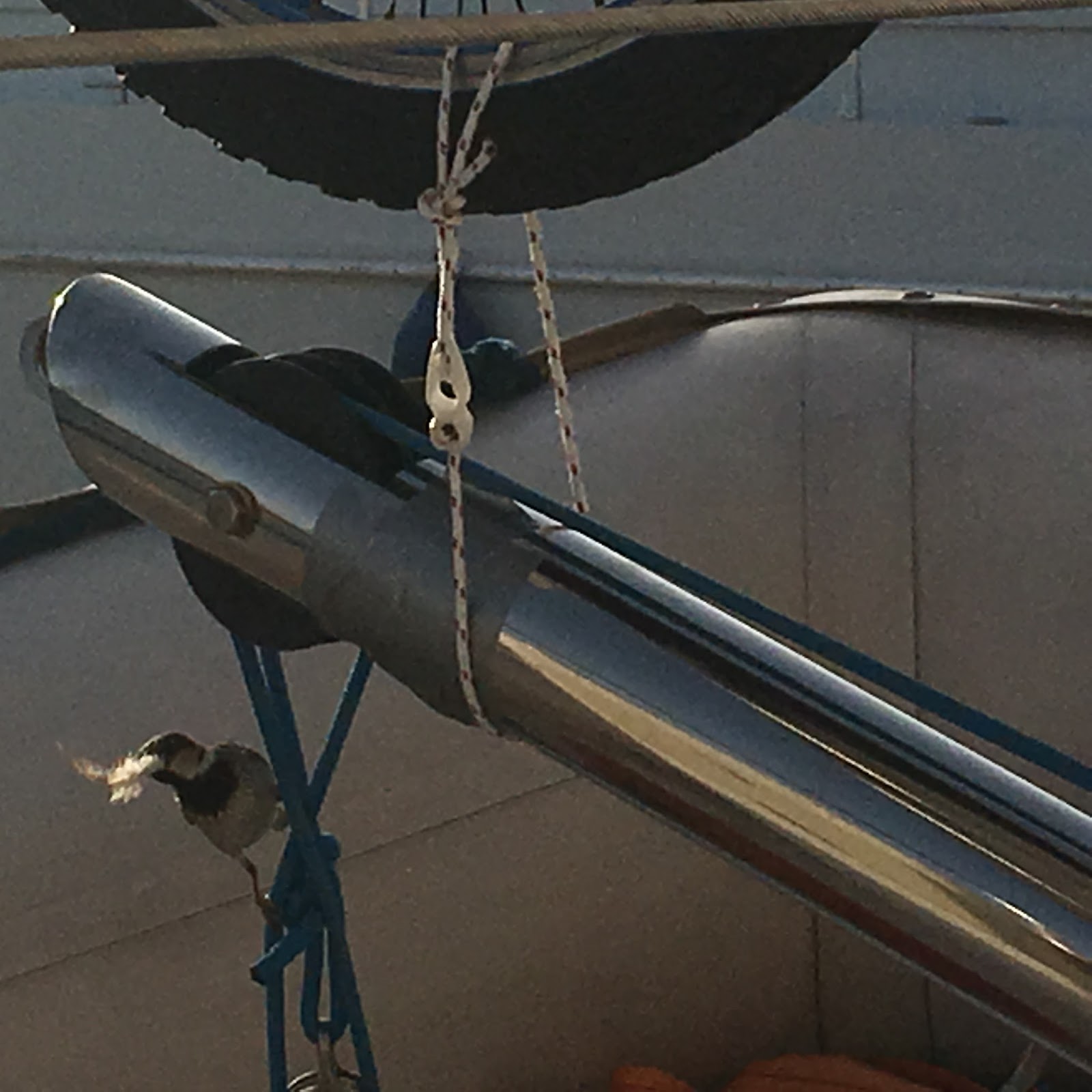 This is a yacht that has so far spent an hour trying to extricate. So we sit here in the re-awakened Sow with at least two chains across ours and no prospect of leaving until they do.